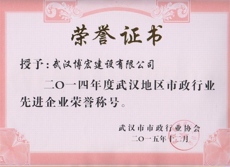 2014年度武漢地區(qū)市政行業(yè)先進企業(yè)