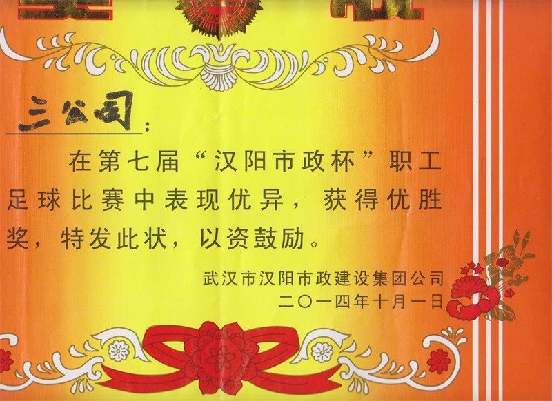 2014年度第七屆漢陽市政杯職工足球比賽優(yōu)勝獎