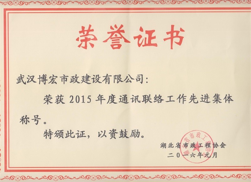 2015年度通訊聯(lián)絡(luò)工作先進集體稱號
