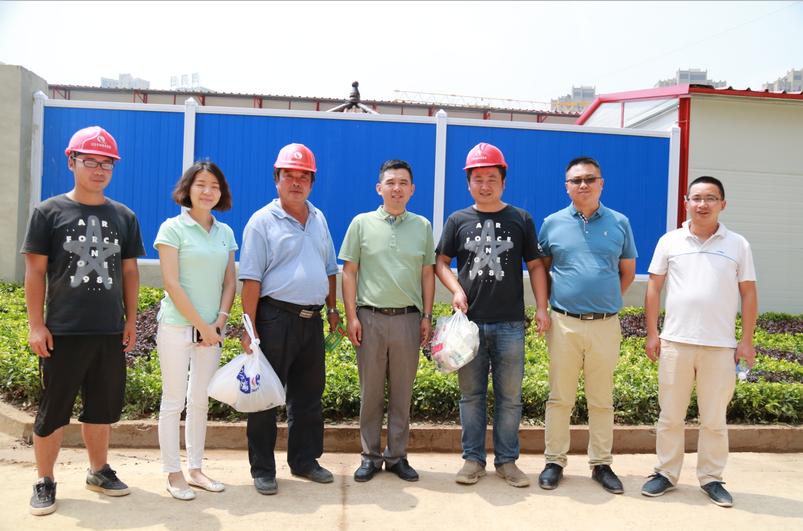 近日氣溫持續(xù)升高,素有“火爐”之稱的武漢早已酷暑難耐,但高溫?fù)醪蛔∈┕と藛T的建設(shè)熱情。6月20日,正值烈日當(dāng)頭,博宏建設(shè)副總工梅浩、工會(huì)主席李俊、項(xiàng)目管理部部長(zhǎng)陳鳴等一行,對(duì)頂著夏日酷暑仍?shī)^戰(zhàn)在公司各條施工戰(zhàn)線的員工及農(nóng)民工兄弟進(jìn)行了防暑降溫慰問(wèn)。