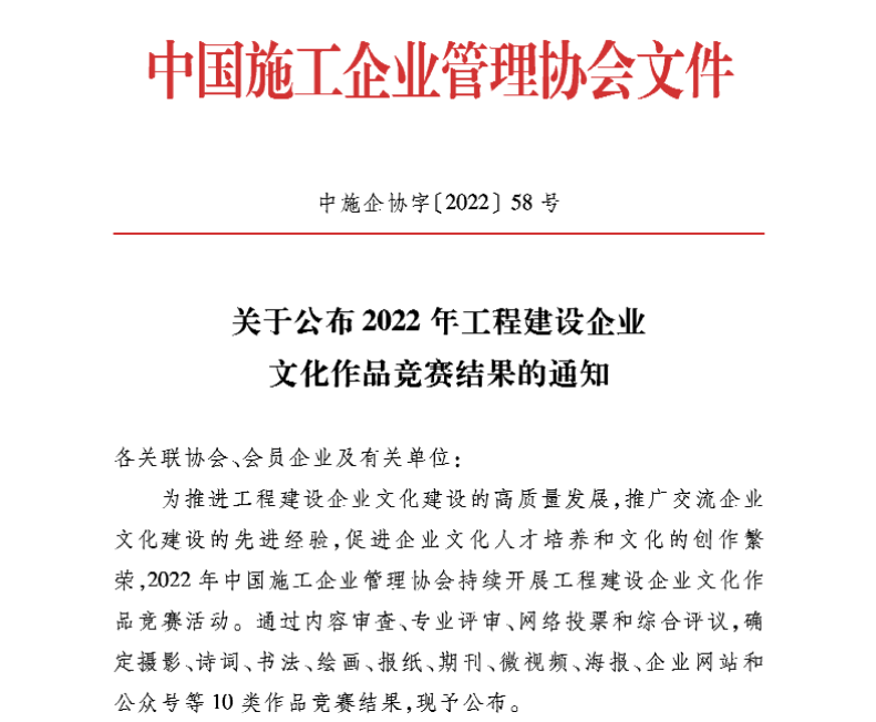 近日,中國施工企業(yè)管理協(xié)會發(fā)布“關(guān)于公布工程建設(shè)企業(yè)文化建設(shè)最佳案例和優(yōu)秀案例的通知”和“關(guān)于公布2022年工程建設(shè)企業(yè)文化作品競賽結(jié)果的通知”,經(jīng)過內(nèi)容審查、專業(yè)評審等環(huán)節(jié),博宏建設(shè)集團《創(chuàng)新企業(yè)文化建設(shè) 凝聚企業(yè)發(fā)展新動能》案例獲評工程建設(shè)企業(yè)文化建設(shè)優(yōu)秀案例;仙山小學(xué)海報獲評海報作品競賽單元三等獎。
