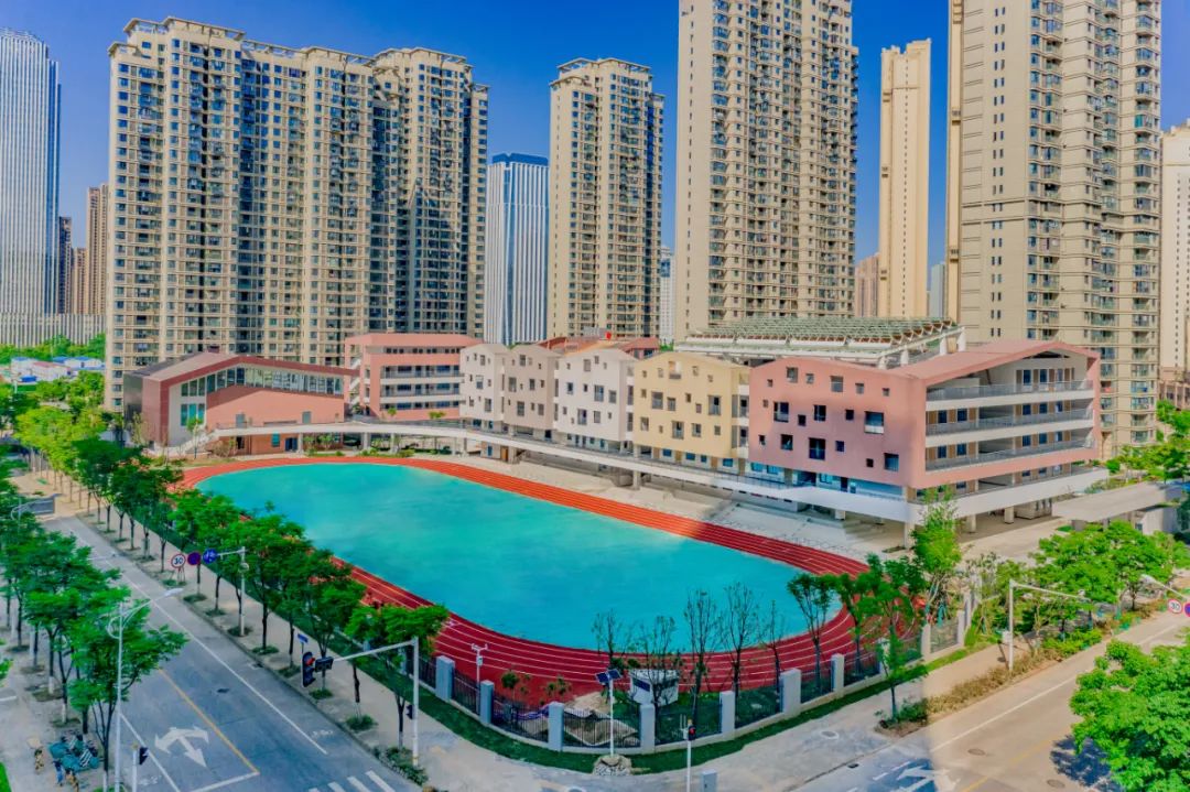 國博三小位于武漢市漢陽區(qū)梅子南街以北,梅子?xùn)|路以東,項(xiàng)目總用地面積為 17387.90 ㎡,總建筑面積為 34829㎡。國博三小將線性外廊立面體塊化,分段鏤空的洞口式設(shè)計(jì)使學(xué)校造型充滿童話色彩,通過開敞平臺(tái)、首層架空、互動(dòng)中庭、連廊平臺(tái)、下沉庭院、屋頂空間等設(shè)計(jì)手段,營造出多樣化的校園空間。